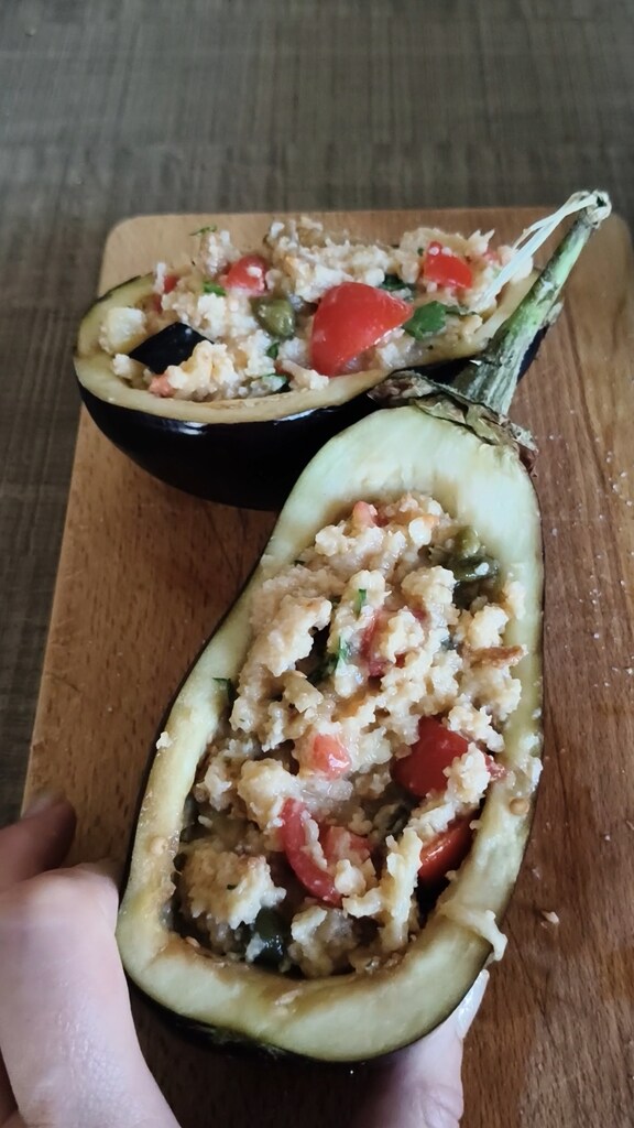 É uma receita caseira, simples mas irresistível, que une sabor e praticidade. As berinjelas podem ser recheadas a gosto, com carne, pão amanhecido ou mesmo apenas com a polpa, tomates e queijo, de acordo com a tradição de cada família. Nesta versão, usa-se o método de cozimento duplo: primeiro na panela, depois uma breve gratinada no forno para criar aquela leve crostinha na superfície que as torna ainda mais convidativas.