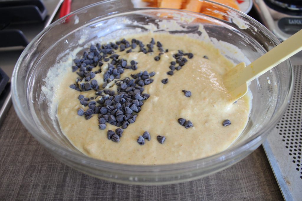 – Adicionar as gotas de chocolate e as avelãs picadas grosseiramente.