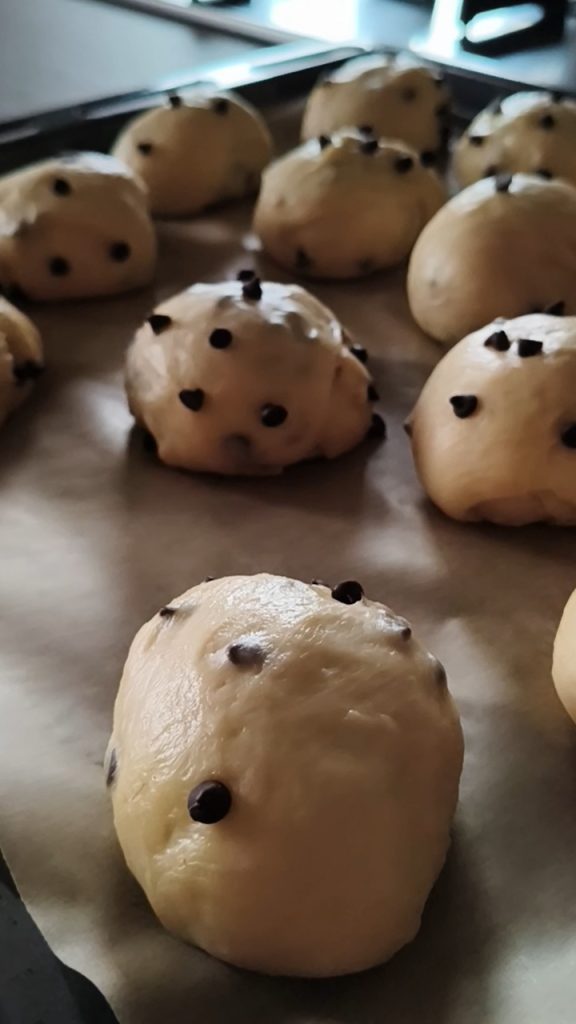 O resultado são umas brioches tipo pangoccioli feitas em casa, com gotas de chocolate bem distribuídas e um sabor equilibrado, não excessivamente doce.