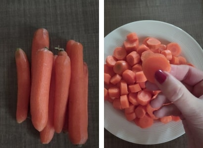 Se você não tiver uma panela de pressão, não se preocupe, porque em cerca de 15/20 minutos as cenouras, cortadas em pedaços pequenos, cozinham.