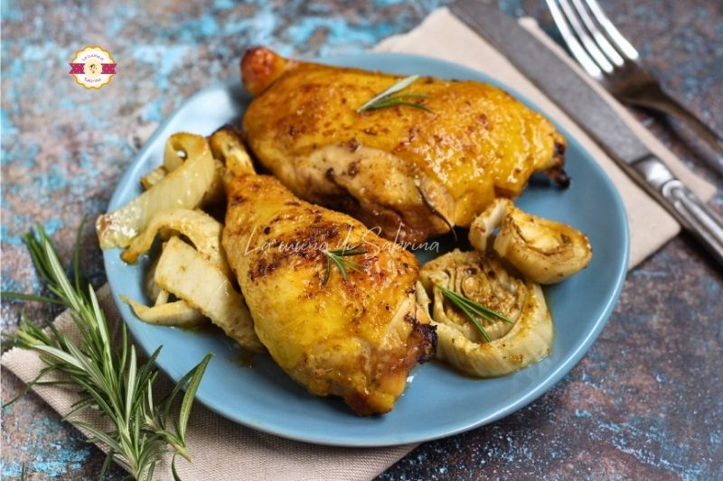 A receita do frango assado saboroso com cítricos, servida com funcho como acompanhamento, é um segundo prato leve e cheio de sabor.