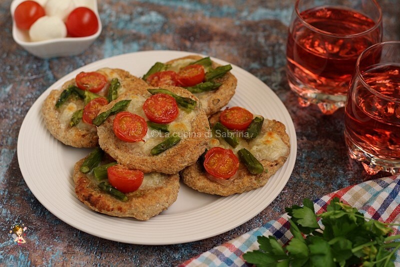 Às vezes, também as como no jantar em vez do pão; porque geralmente o almoço é sempre um pouco corrido e o pão nem o vemos! À noite, em vez disso, finalmente relaxados, nos permitimos, como prescrito pelo médico, uma fatia de pão por pessoa .. rigorosamente integral! E já que uma dessas mini pizzas pesa cerca de 40 g, com 2 mini pizzas por pessoa, em termos de carboidratos, estamos bem.