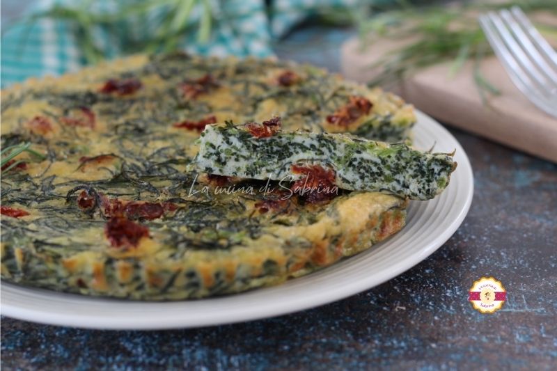 Sacia, leve e cheia de sabor, a omelete assada com agretti e tomates secos é perfeita para servir como segundo prato ou num buffet.