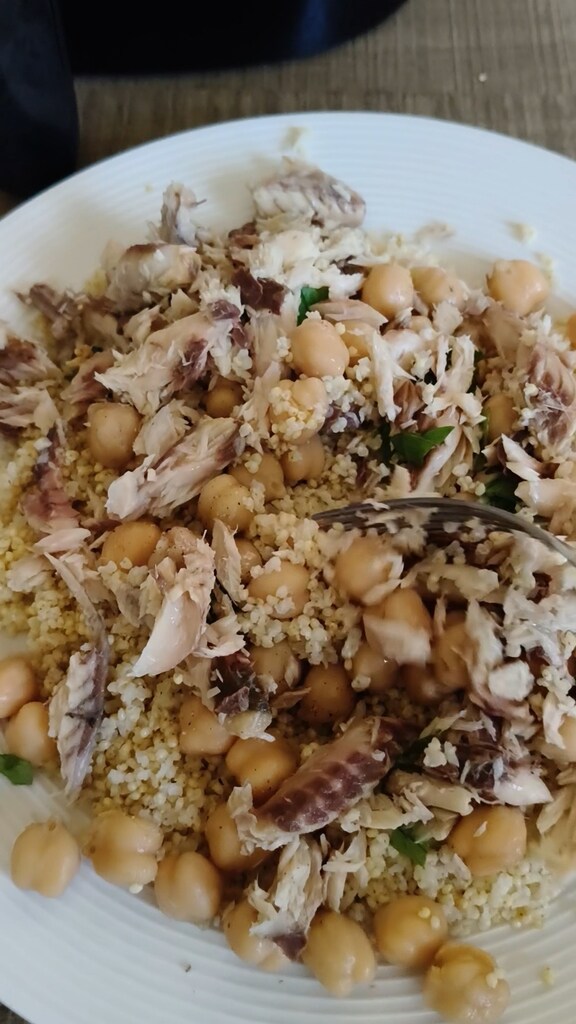 A versão base com painço e grão-de-bico é vegetariana. Se adicionar cavala, se torna pescatariana. Você pode facilmente adaptá-la também em versão vegana (leia as dicas).