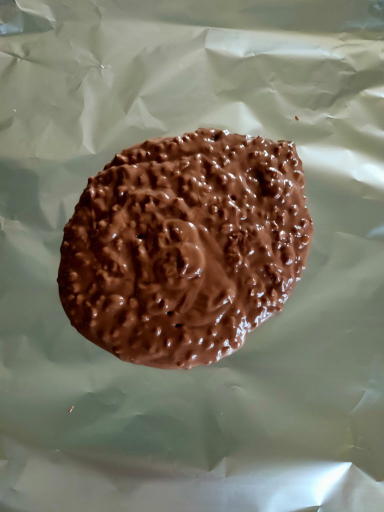 – Pique o chocolate ao leite com uma faca e derreta em banho-maria ou no microondas; deixe esfriar levemente e adicione o granulado. Misture bem.