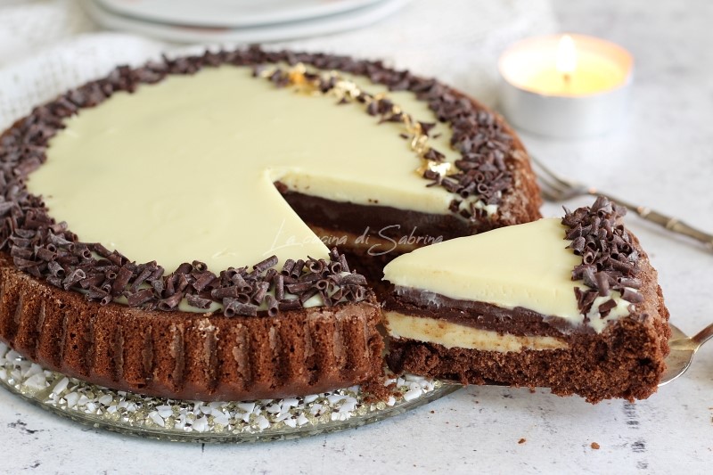 A tarte de duplo chocolate é uma sobremesa deliciosa que tem como base a crostata esperta e é recheada com três camadas de ganache de chocolate.