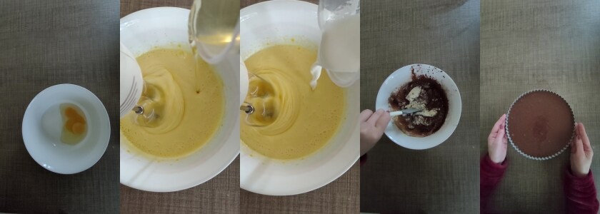 – O procedimento é o mesmo da torta happiness. Bata os ovos com o açúcar, adicione o óleo e o leite e, por último, as farinhas previamente peneiradas e misturadas. Preencha o molde levemente untado com a mistura e asse em forno pré-aquecido a 180°C por cerca de 25 minutos.