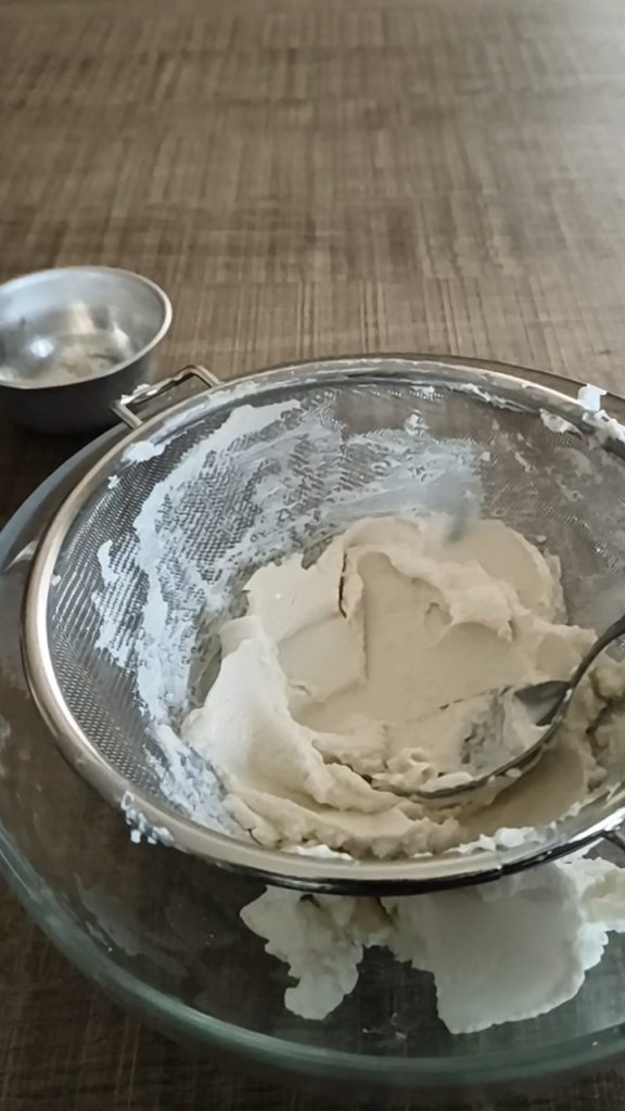 Peneire as ricotas com uma peneira de malha fina para eliminar os grumos e obter assim um creme aveludado.