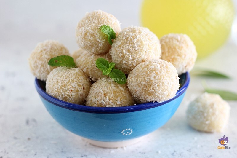 Elas são preparadas realmente em pouquíssimos minutos porque todos os ingredientes são colocados no copo do processador de alimentos; depois, formam-se as bolinhas e mergulham-se no coco ralado.