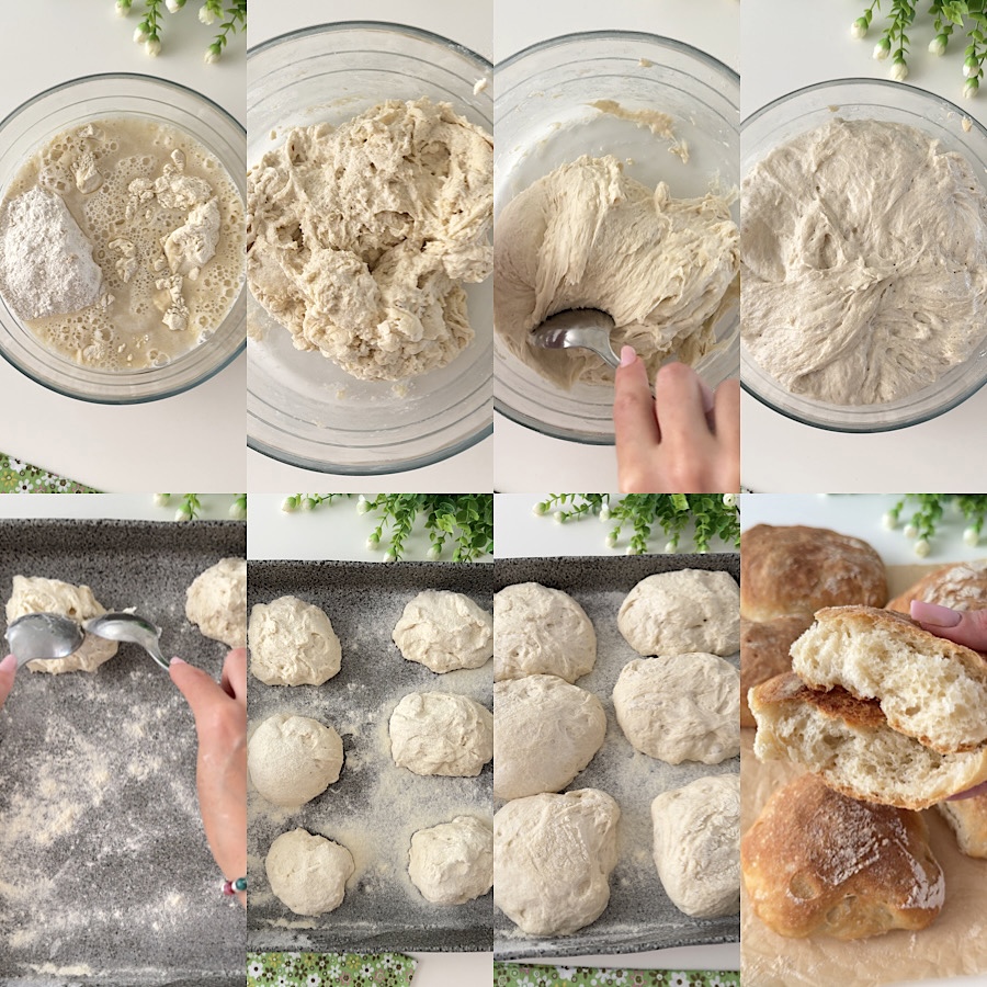 Os pãezinhos de colher sem sova conservam-se à temperatura ambiente por 3/4 dias. Se preferir, pode usar apenas farinha 0 ou apenas sêmola remacinada, com a sêmola ficarão mais saborosos e crocantes.