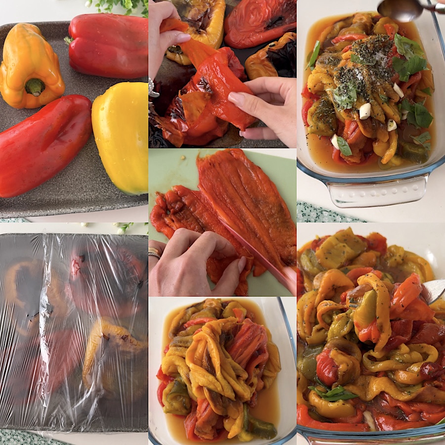 A salada de pimentões marinados é uma receita Siciliana de verão simples, mas realmente deliciosa. Minha bisavó e minha avó sempre a preparavam, no verão, com os pimentões da horta deles, uma receita simples e saborosa para preparar em poucos minutos e com poucos e simples ingredientes. Deliciosa quente e ainda mais fria (especialmente no dia seguinte), a salada de pimentões marinados à Siciliana é perfeita como entrada ou acompanhamento vegetariano e vegano, deliciosa em bruschettas, na pizza ou dentro de um belo sanduíche. Além da receita, dou também uma pequena dica sobre como cozinhar os pimentões no forno (mas também na fritadeira a ar) e descascá-los num instante!