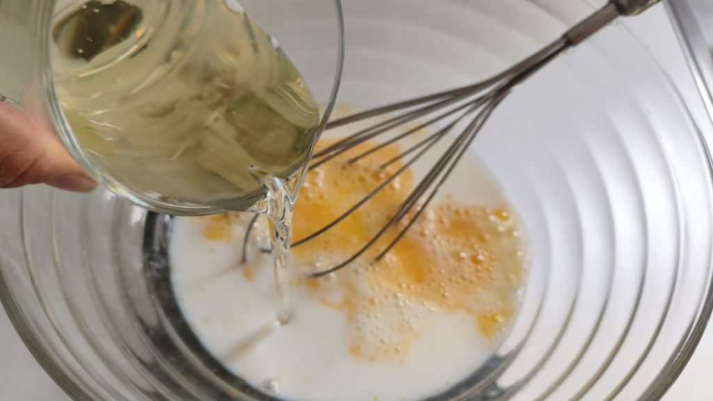 • junte o óleo, misture e aos poucos adicione os ingredientes secos.