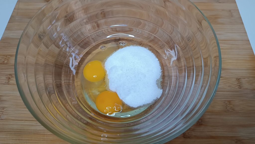 • Trabalhe os ovos com o açúcar até obter uma mistura espumosa.