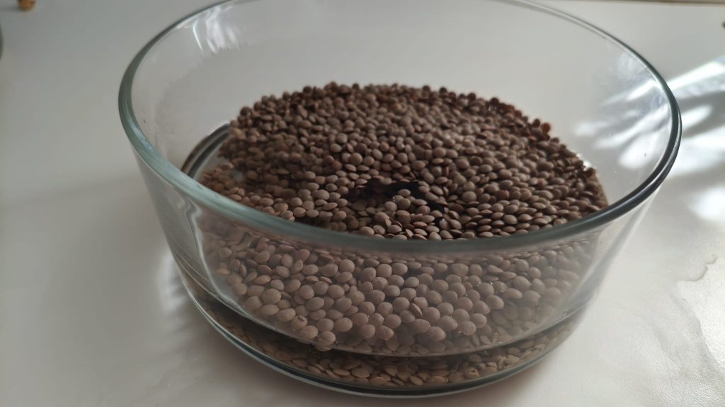 Deixe as lentilhas vermelhas de molho por cerca de 2 horas. Escorra e enxágue.