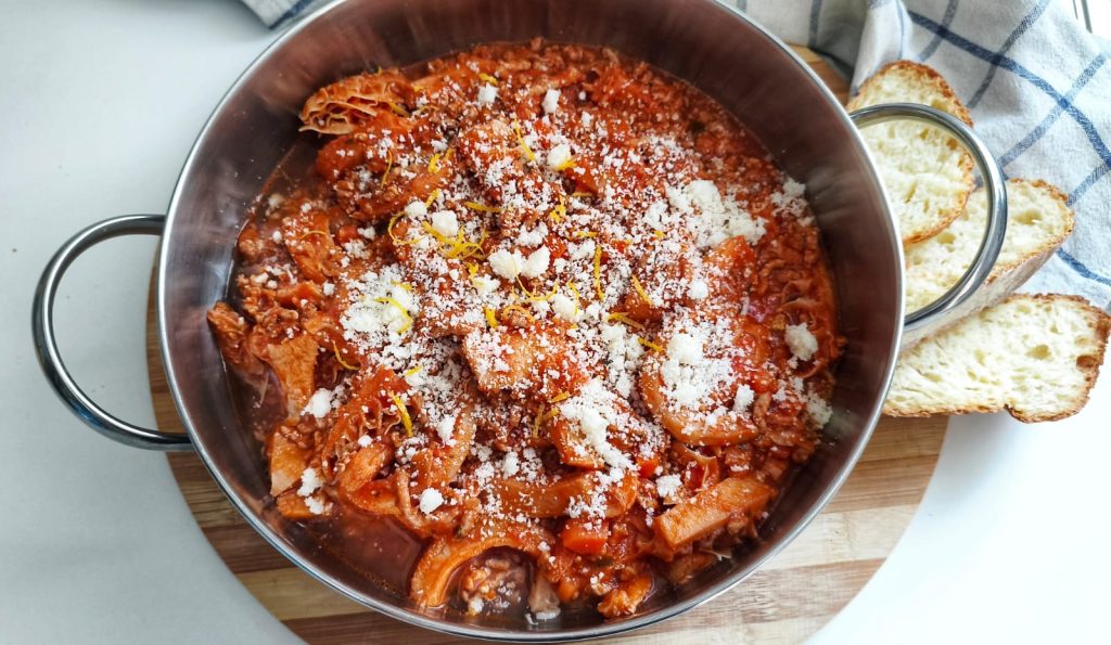 A preparação é realmente fácil: começa-se com um clássico refogado de cenoura, aipo e cebola, que deve ser deixado dourar bem para liberar todos os seus aromas. Uma vez que o refogado está bem dourado, adiciona-se uma boa carne moída e deixa-se cozinhar. Por último a dobradinha cortada em tiras finas. Eu prefiro deixá-la cozinhar devagar, assim ela absorve bem os sabores e se torna macia no ponto certo. A verdadeira magia vem no final: uma generosa pitada de Parmigiano Reggiano ralado e uma raspadinha de casca de limão que dá aquele toque de frescor inesperado e absolutamente irresistível.