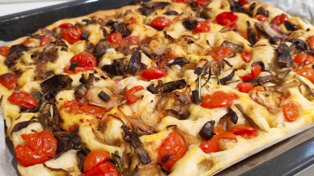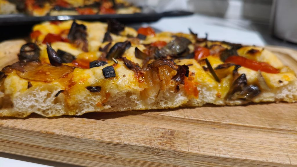 Esta focaccia crocante por fora e macia por dentro é uma solução ideal para quem quer surpreender com uma preparação artesanal de sabor autêntico. Pode ser servida quente, recém-assada, ou apreciada à temperatura ambiente para aproveitar ainda mais a consistência.