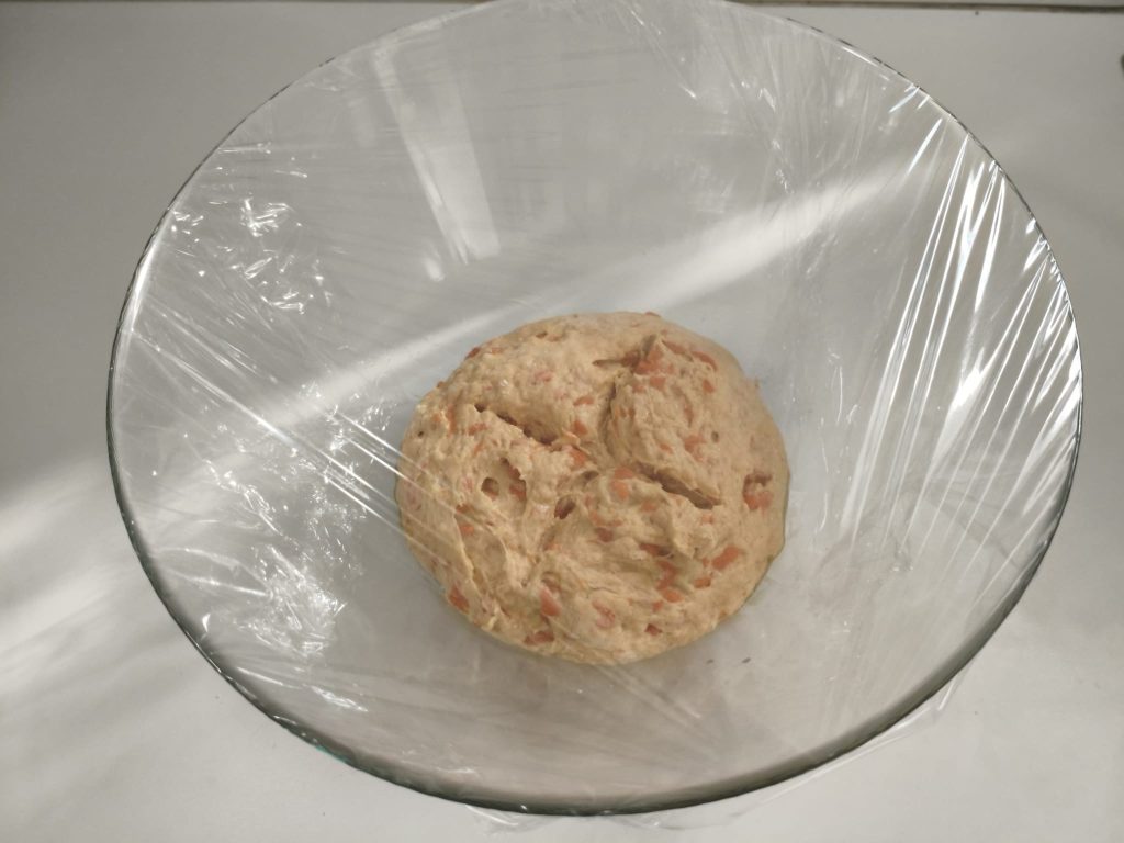 Cubra a massa com um plástico filme e deixe fermentar por 3 horas em um local quente.