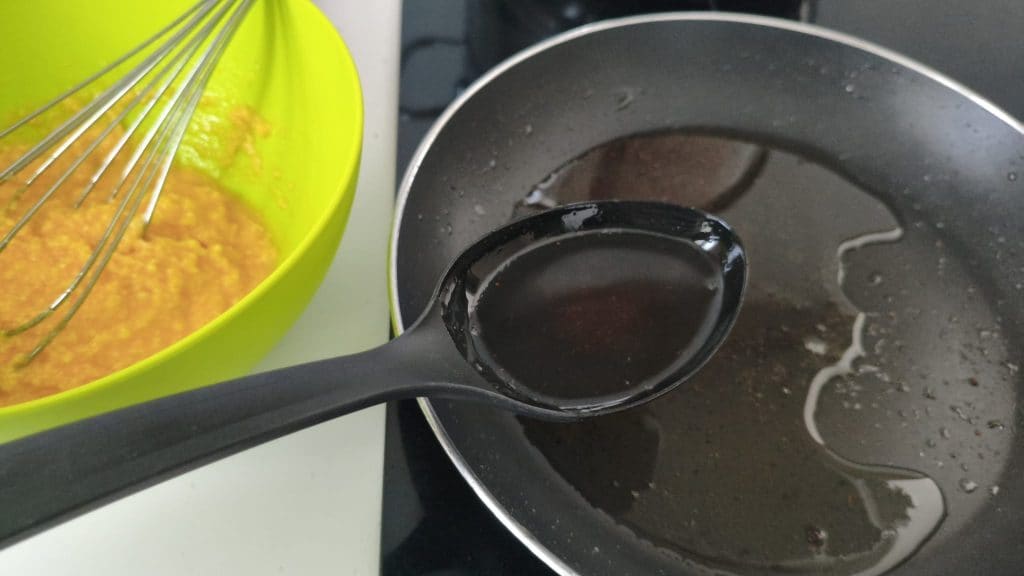 Adicione duas colheres de gordura do guanciale para tornar o creme de gemas cremoso e denso na medida certa.