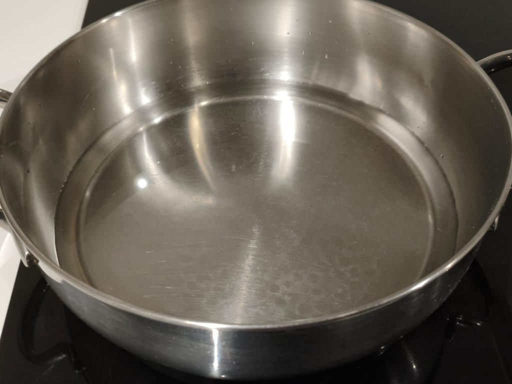 Leve a água para ferver em uma panela com uma pitada de sal. Quando começar a ferver, junte a farinha de arroz e mexa imediatamente com uma colher: a água fervente ajuda a farinha de arroz a se compactar e ficar trabalhável.