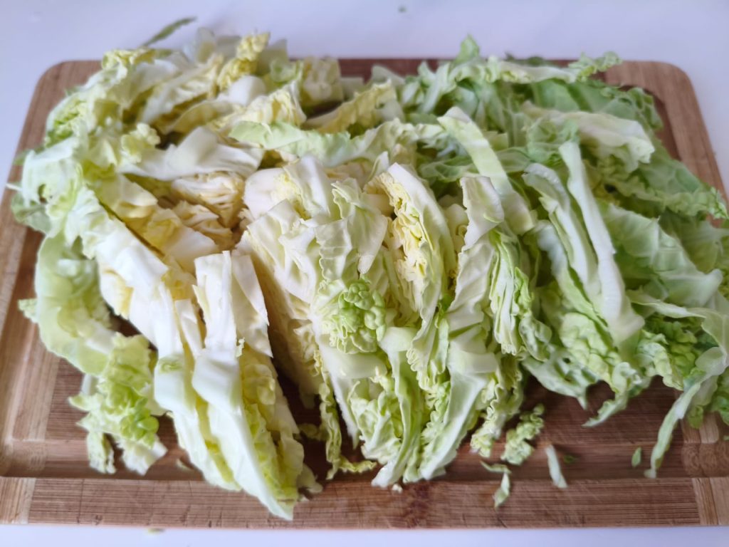 Adicione o repolho cortado, despeje um pouco de água e cozinhe até que fique macio.