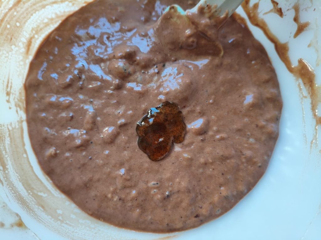 O bolo de banana e cacau está pronto!😀