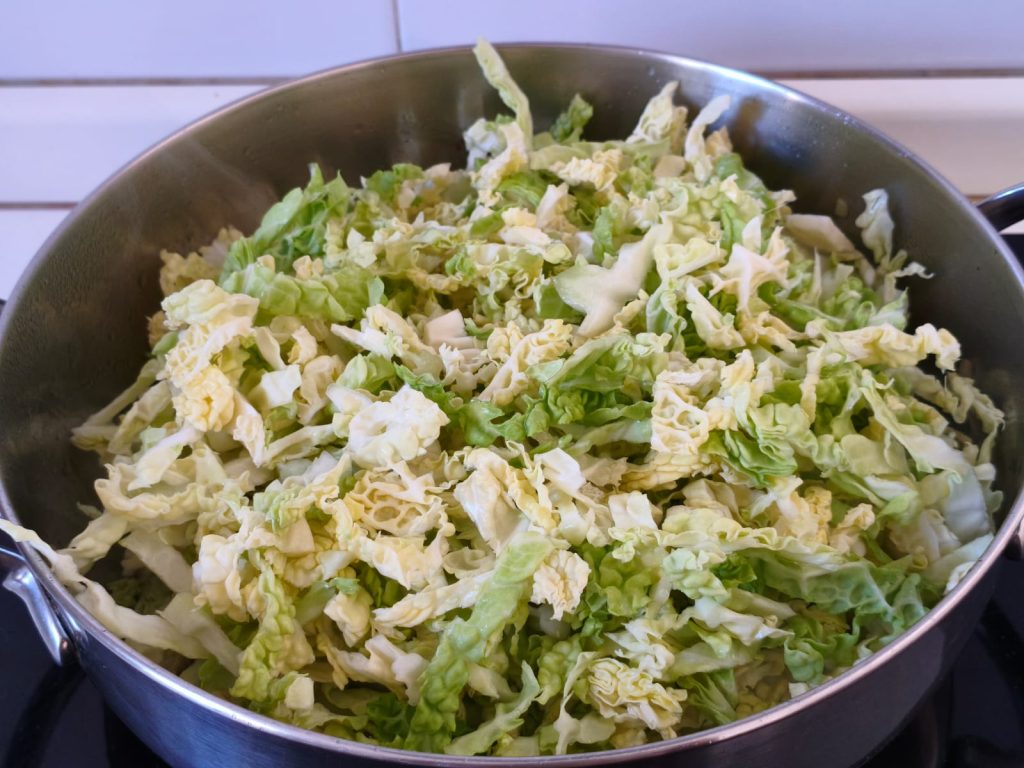 Basta poucos ingredientes: arroz Carnaroli, linguiça fresca, repolho cortado em tiras finas, cebola, caldo quente e um pouco de parmesão para finalizar.