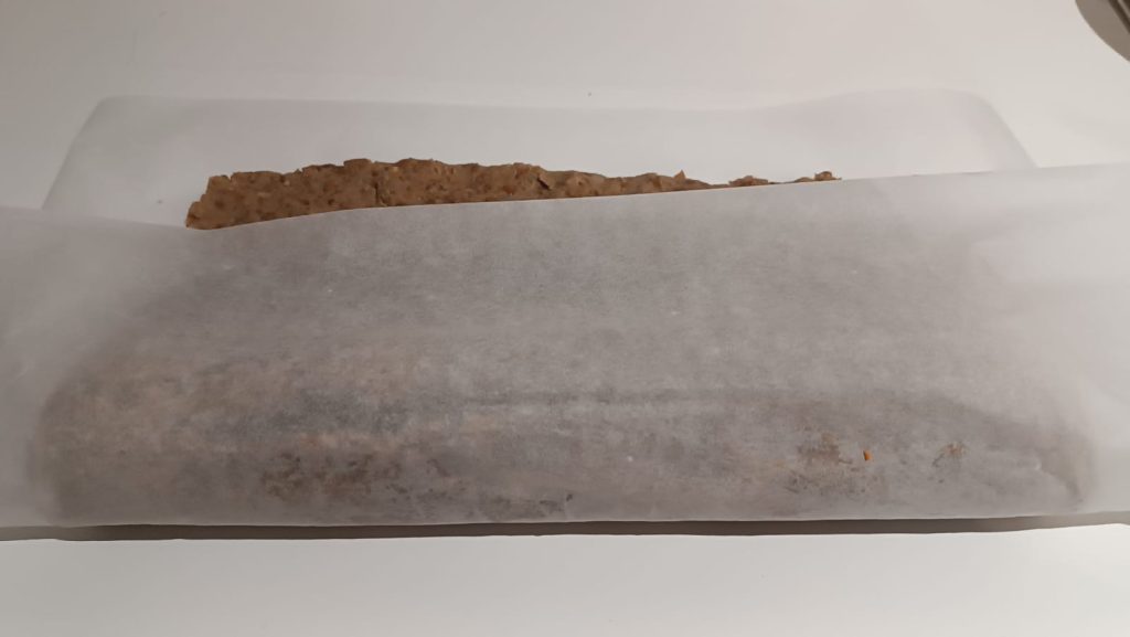 Sobre papel manteiga, espalhe a mistura formando um retângulo