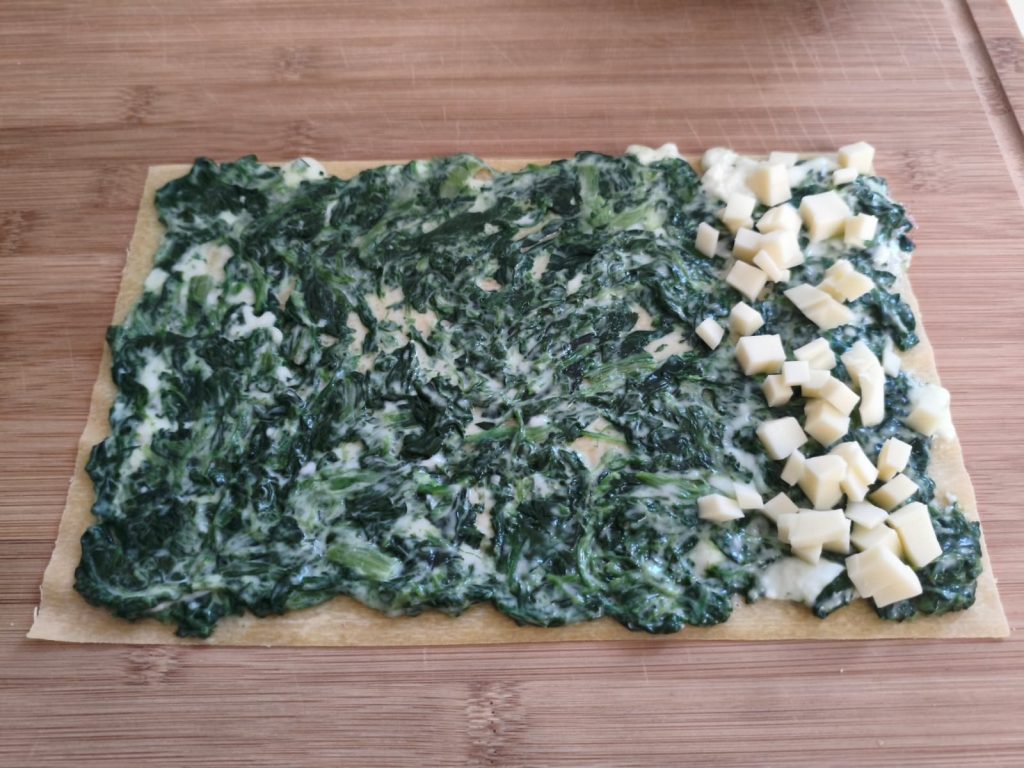 Pegue metade do molho branco e misture com os espinafres cozidos e o stracchino. Você obterá um recheio cremoso e saboroso.