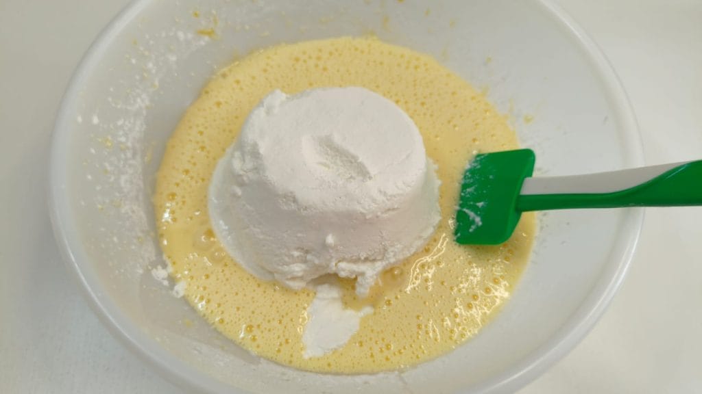 Adicione à massa batida a ricota e misture delicadamente para obter um composto liso sem grumos.