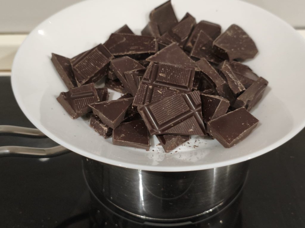 Cobertura crocante: o chocolate amargo com avelãs trituradas dá um toque irresistível. Se preferir, você pode usar chocolate ao leite ou branco para um efeito mais suave.