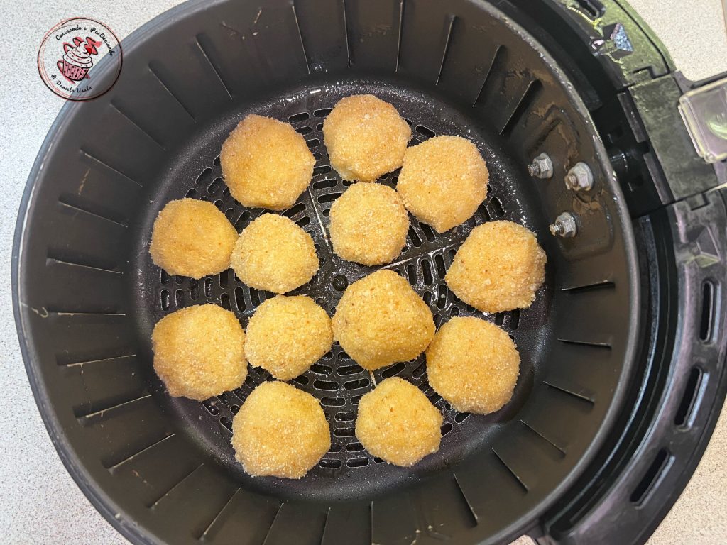 • Coloque as almôndegas na cesta da fritadeira a ar. Borrife um pouco de óleo na superfície e cozinhe a 200° por cerca de 15/20 minutos
