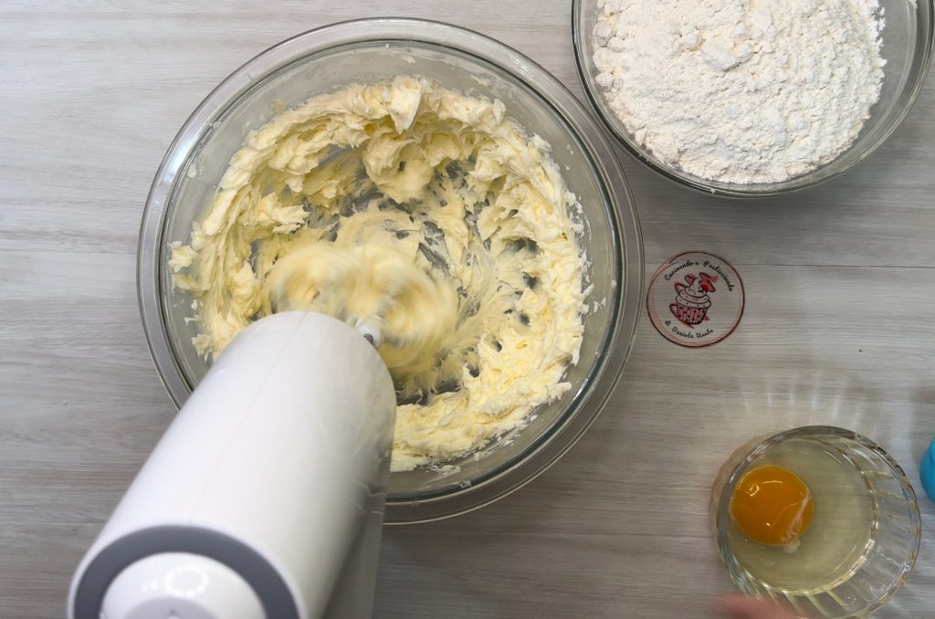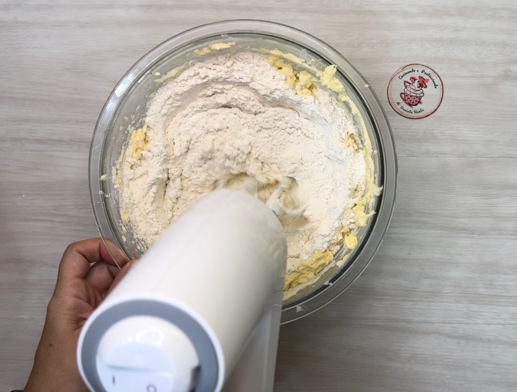 Por fim, adicione a farinha e continue com a batedeira elétrica até obter uma massa homogênea e montada sem grumos.