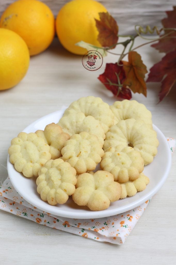 Hoje eu preparei os biscoitos de massa amanteigada com laranja. Estão deliciosos. Super crocantes, derretem na boca. Após o sucesso dos Biscoitos de massa amanteigada com limão e os Biscoitos de chocolate de massa amanteigada, estava faltando a versão com laranja. Ficam ótimos combinados com chocolate. Eu usei a sparabiscoitos, mas pode-se usar tranquilamente o saco de confeitar com bico estrela. Prepará-los é muito fácil. Usei a batedeira planetária, mas também funcionam com as comuns batedeiras elétricas. Desta vez, no entanto, no preparo não usei apenas manteiga, mas também minha banha feita em casa e devo dizer que o resultado foi realmente muito bom. Crocantes, derretem na boca. Perfeitos para acompanhar o chá ou café.