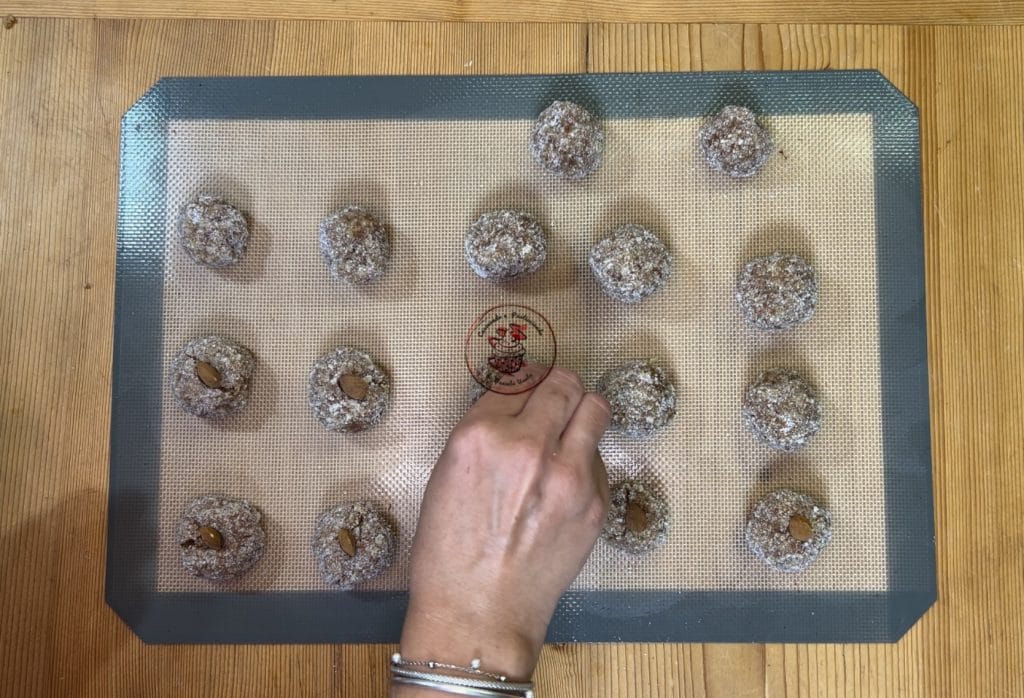 Transfira os biscoitos para o tapete de silicone ou para a assadeira forrada com papel manteiga e asse por 15 minutos a 180°C.