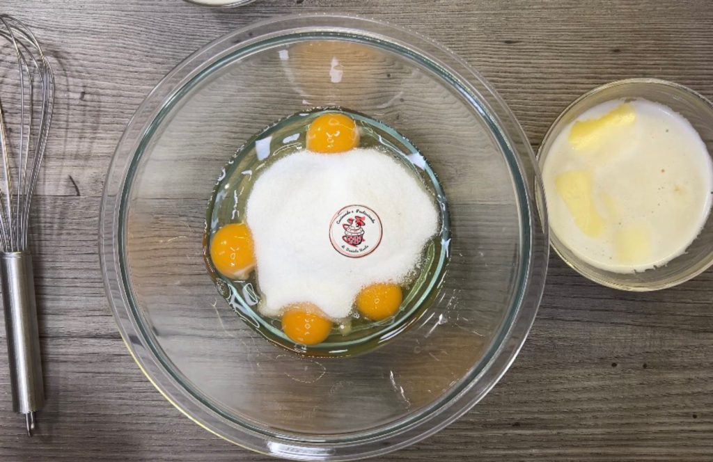 Coloque os ovos e o açúcar em uma tigela e bata levemente com o batedor.
