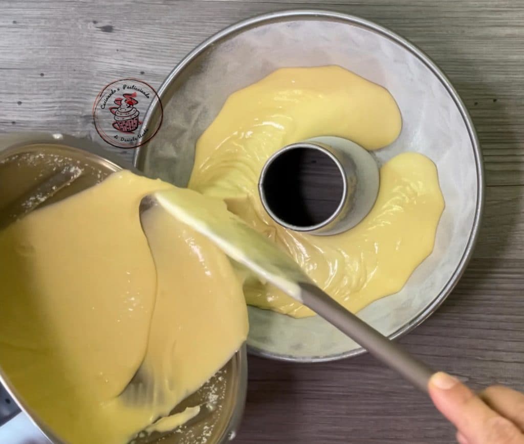 Despejar a mistura na forma untada e enfarinhada e assar a 180° por cerca de 40 minutos.