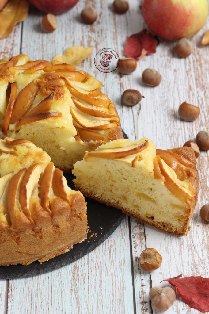 Hoje preparei um delicioso Bolo macio de maçã com creme de confeiteiro, maravilhoso, úmido e delicioso como eu gosto, graças ao creme de confeiteiro. Para prepará-lo, basta uma tigela e um batedor. Não é necessário batedeira ou planetária. Na verdade, não é preciso bater os ovos com o açúcar, basta misturá-los. Em poucos passos simples, você terá uma sobremesa verdadeiramente deliciosa. Dependendo da estação, você pode substituir as maçãs por pêssegos, laranjas ou bananas. Em suma, você pode usar essa base para muitas variações. Se você é amante de doces com maçãs, deixo aqui outras ideias.
