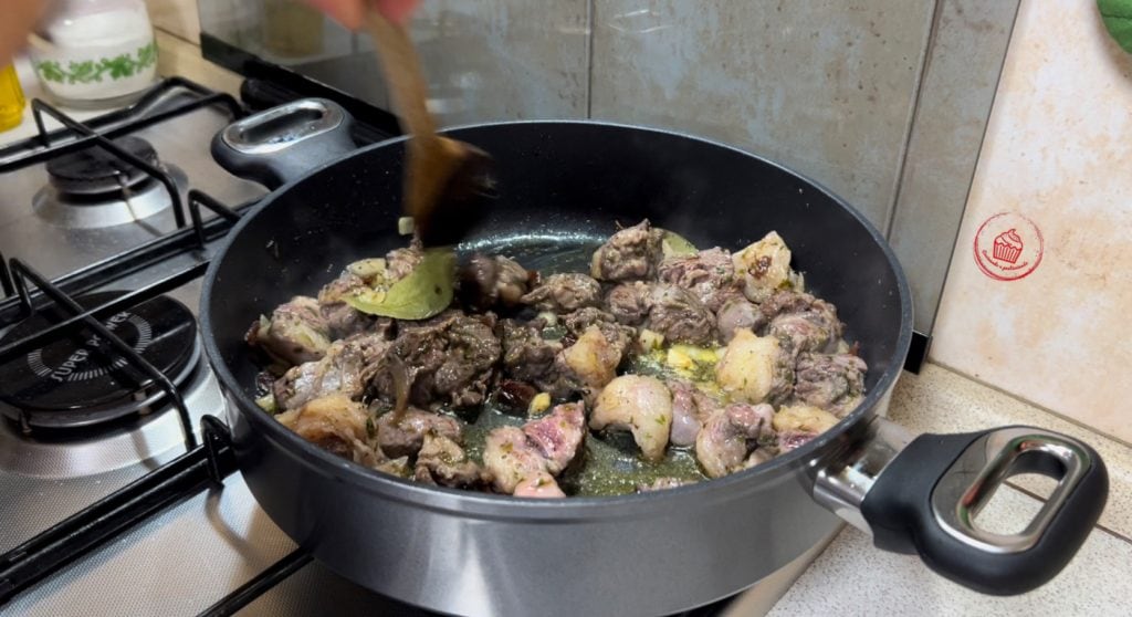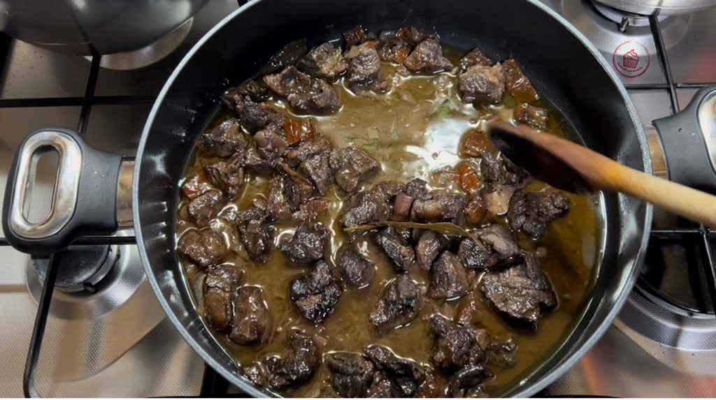 A Cabra ensopada é uma receita típica da Sardenha que preparo frequentemente. Existem muitas receitas, dependendo da região da Sardenha. Minha mãe sempre a prepara assim, e devo dizer que é muito saborosa, uma receita realmente simples.