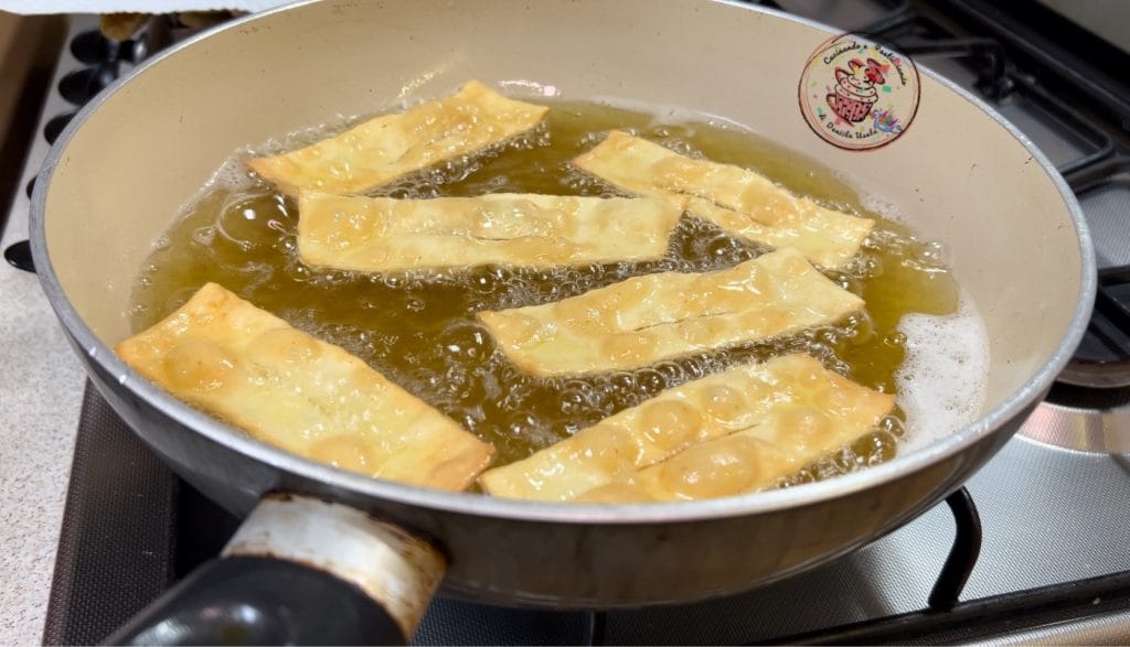 Fritei em óleo quente por aproximadamente 5 minutos. A temperatura ideal do óleo é em torno de 170°/180°. Transfira para papel toalha.