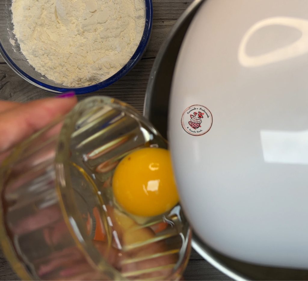 Adicione o ovo e continue misturando. Nesta fase, use a pá. Adicione a pitada de sal.