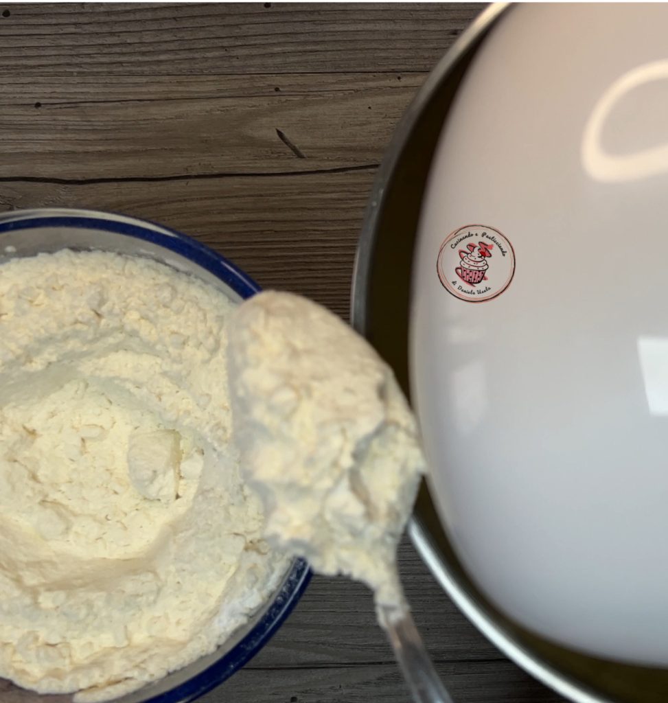 Em seguida, adicione a farinha peneirada com o fermento, a baunilha e o bicarbonato.