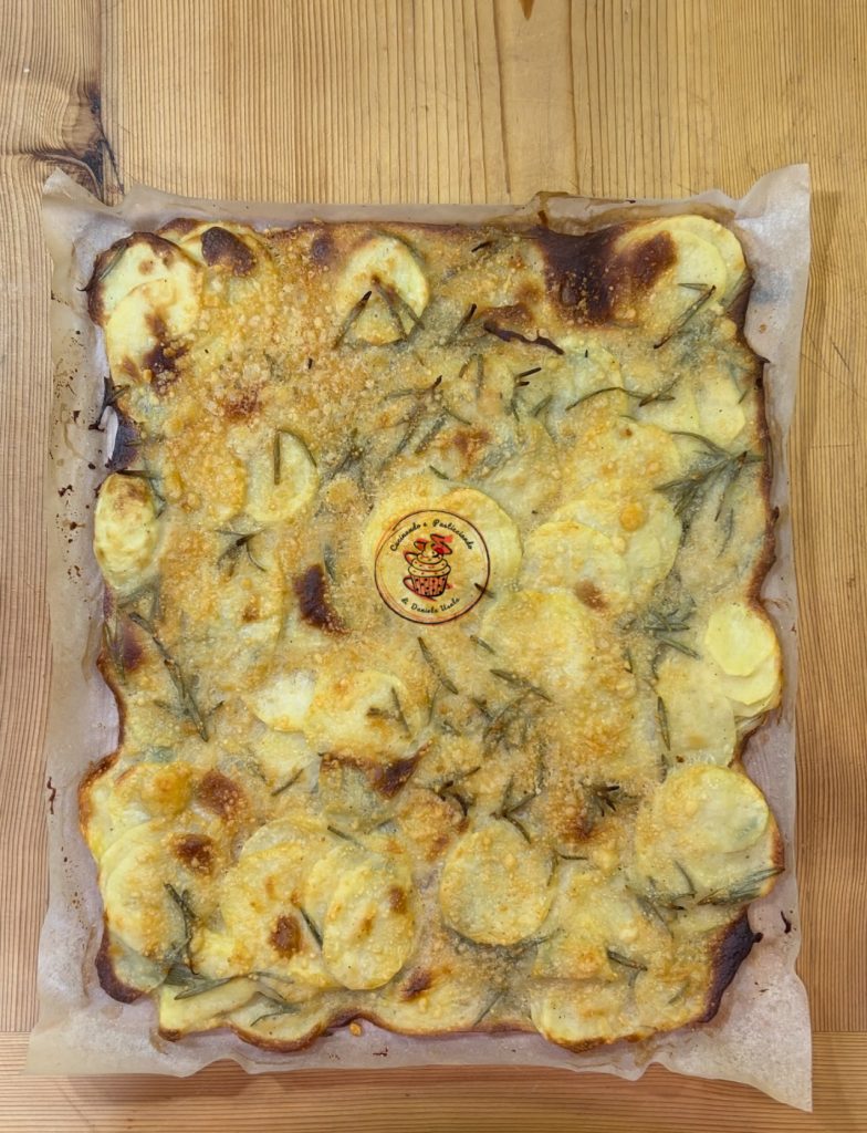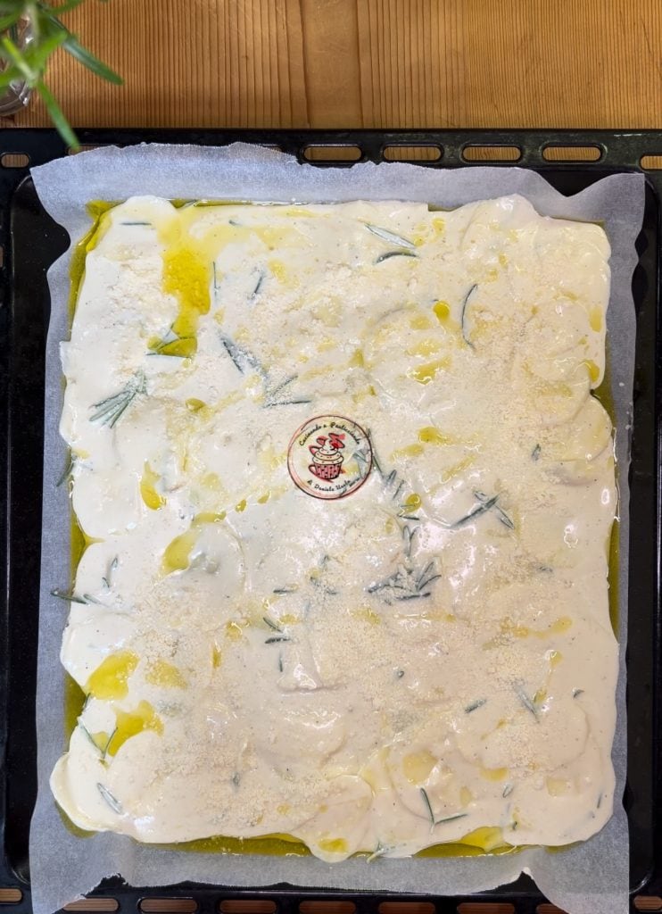 A focaccia com batatas é deliciosa, fácil e rápida, mas acima de tudo bem crocante, é impossível resistir. O aroma do alecrim, na minha opinião, é aquele toque extra. Para preparar a focaccia de batata usei o mandolin porque queria as batatas em fatias, mesmo que bem finas, mas se preferir você pode ralá-las. É deliciosa quente, mas posso garantir que a focaccia de batatas é ótima também fria.