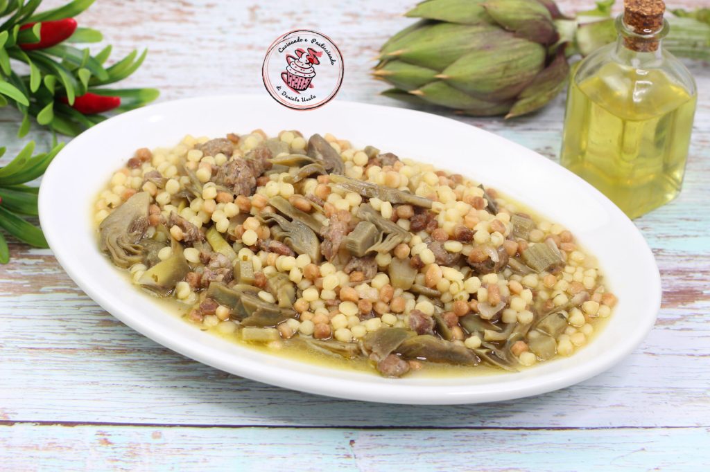 Hoje para o almoço preparei a Fregula com alcachofras e linguiça, deliciosa. A fregula é um dos pratos típicos da Sardenha mais amados. Existem muitas receitas também no Blog, a Fregula com mariscos, a Fregula Sarda com camarões grandes, a Fregula Sarda com aspargos selvagens, receita fácil fácil. Enfim, se você é amante da Fregula sarda, como eu, deve experimentá-las todas. Existem muitos modos de cozinhar a fregula, pessoalmente gosto dela um pouco com caldo, mas você pode fazê-la mais seca também.