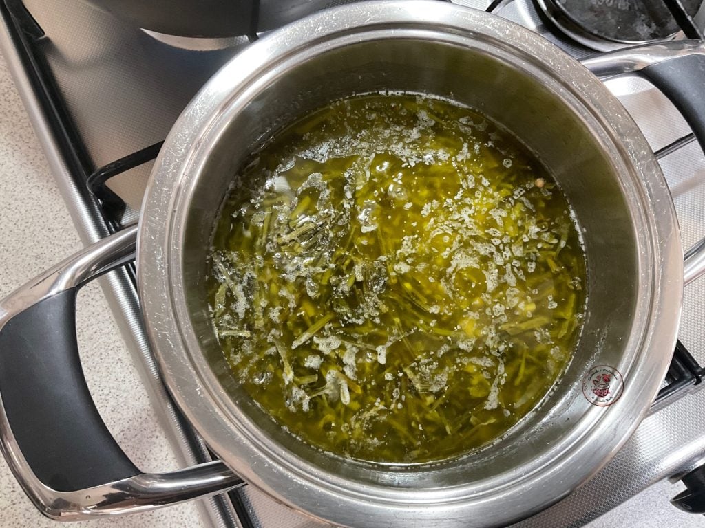 Dourá-los com óleo, sal, alho e salsa desidratados. Enquanto isso, preparar o caldo de legumes.