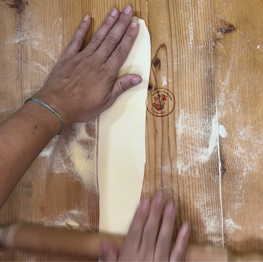 Divida a massa em pequenos pedaços e abra-os bem com o rolo de massa. Eles devem ficar bem finos.