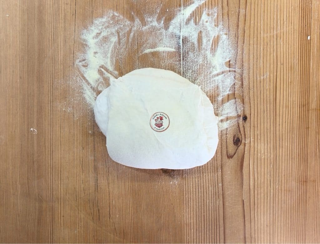 • Coloque bastante sêmola de trigo na bancada e abra as pizzas com as mãos, tentando não pressionar muito as bordas.