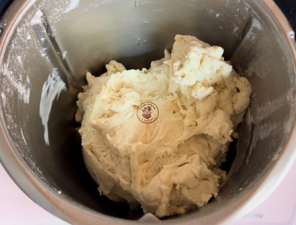 Adicione as farinhas e trabalhe por 3 minutos na velocidade espiga. Deixe descansar por 30 minutos.