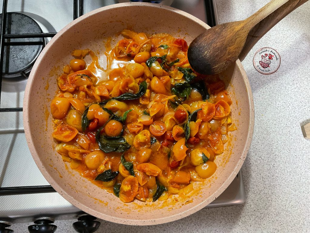 Não sei como está aí, mas aqui na Sardenha, mesmo sendo Novembro, ainda está quente. Hoje colhi os últimos tomatinhos amarelos do jardim e decidi preparar macarrão. As penne com molho de tomatinhos amarelos é um prato simples, rápido e, acima de tudo, muito saboroso. Certamente um dos últimos pratos de verão da estação, e eu diria, ainda bem. Estou com saudade do inverno, sinceramente. Já não aguento mais este calor anômalo.
