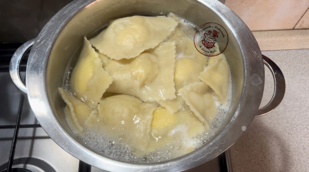 Cozinhe os ravioli por cerca de 15 minutos (os meus estavam bastante grossos) mas ajuste de acordo com a espessura dos seus ravioli. Nós gostamos bem grossos.
