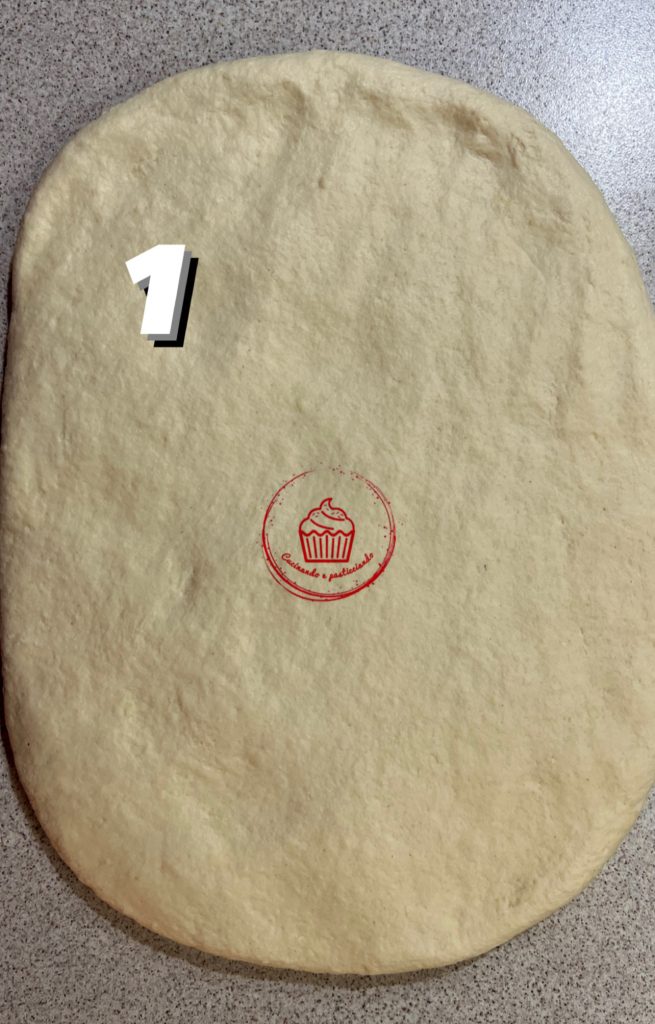 Então trabalhei manualmente por cerca de 5 minutos, para absorver o sal. Depois fiz uma rodada de dobras em 3. Repeti 3 vezes a intervalos de 15 minutos entre uma e outra.